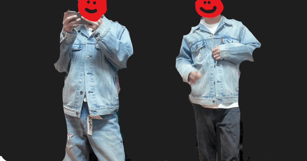 俺はちなみに172cm57キロでジャケットサイズS、デニムは30インチを選択した。