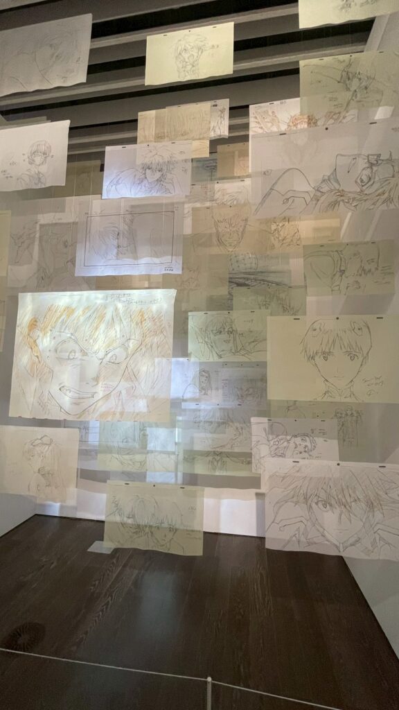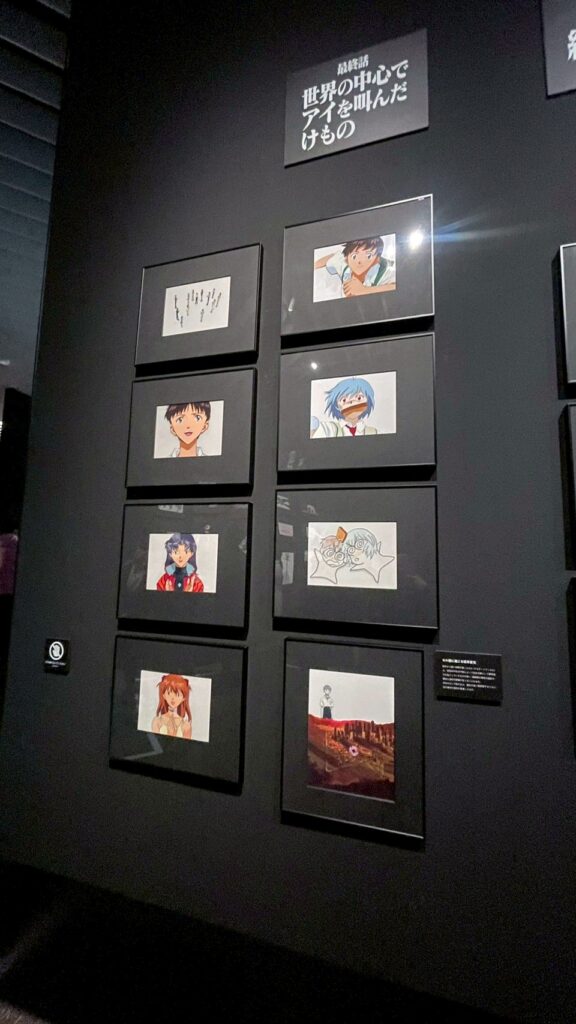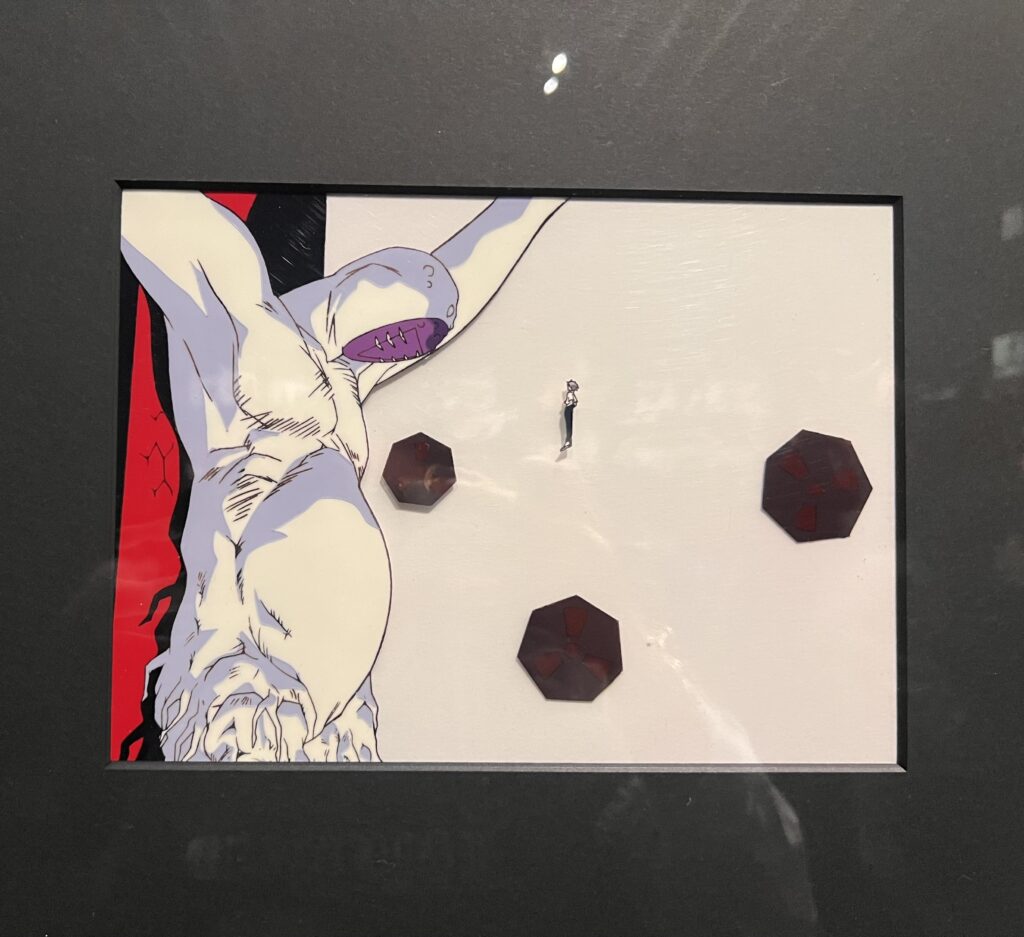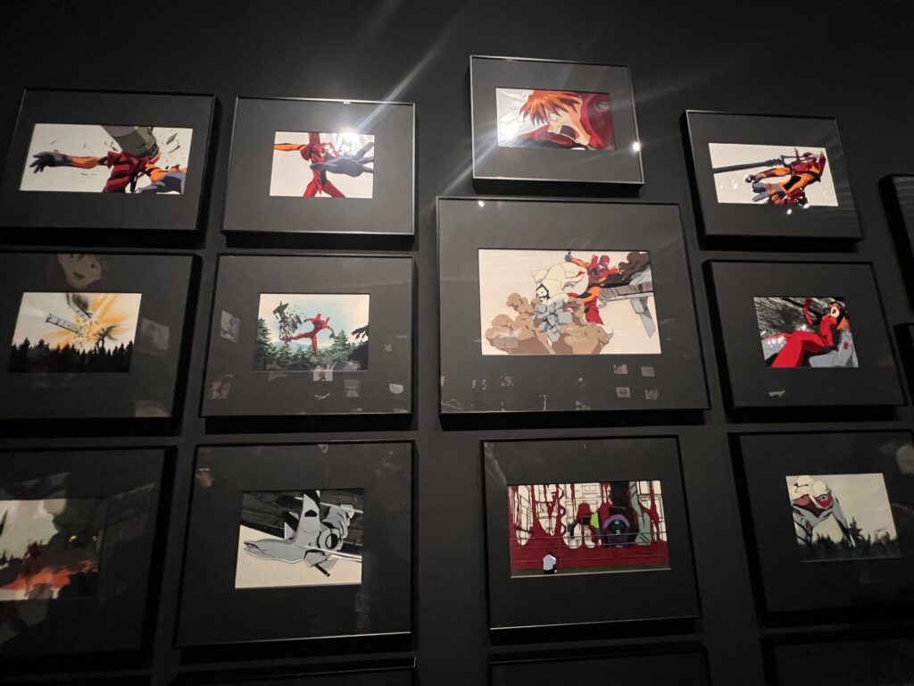 第一話 使徒襲来で使用されていたセル画が10枚、第二話10枚、、、とかなり量が多くてマジで美術館のようだった。
