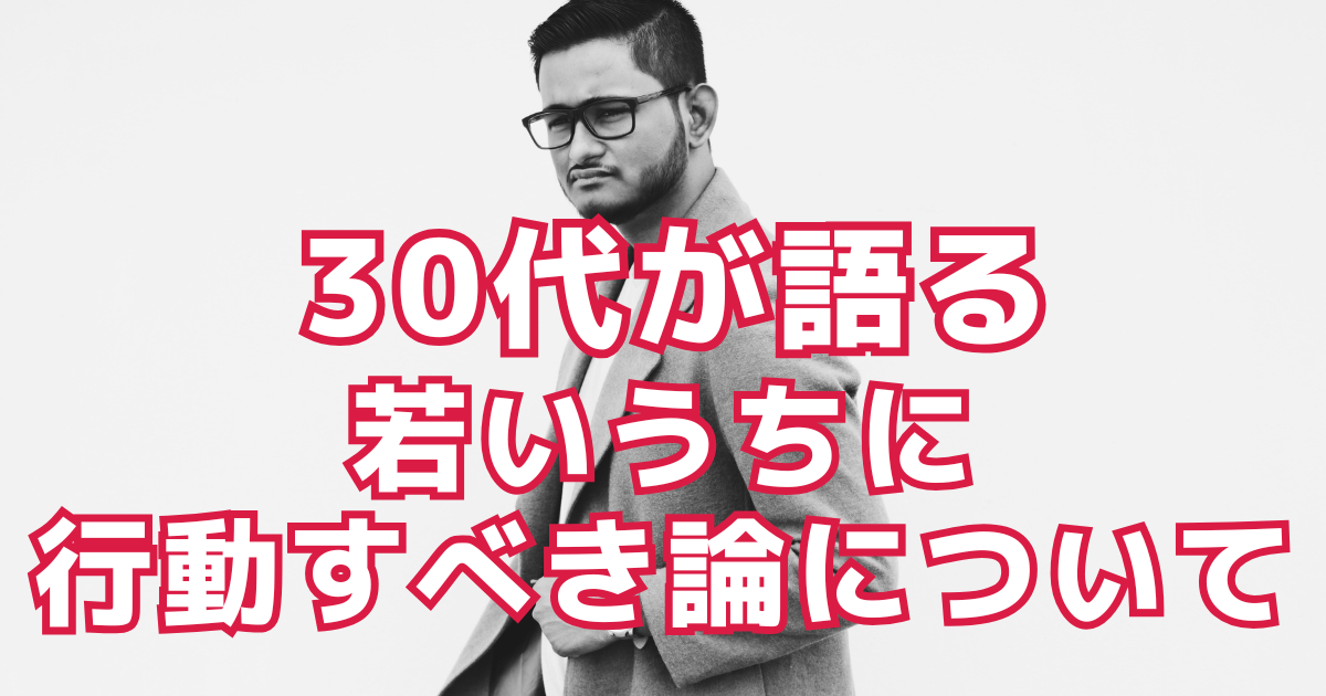 今日は以前にも書いた気がするけど、若い時に行動をしておけっていう言葉に対して思うことを色々書いていく。