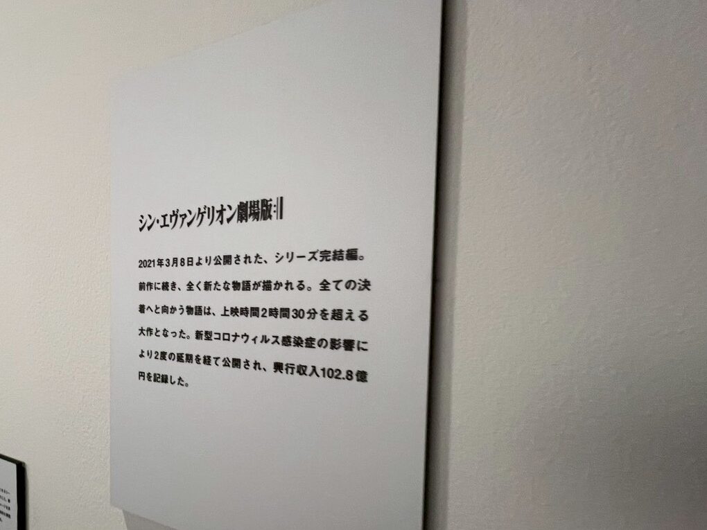 序章ってことでエヴァの各キャラの設定、使徒の詳細、建物の詳細などの設定資料のパネルが展示されていた。