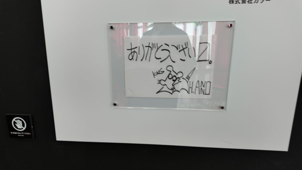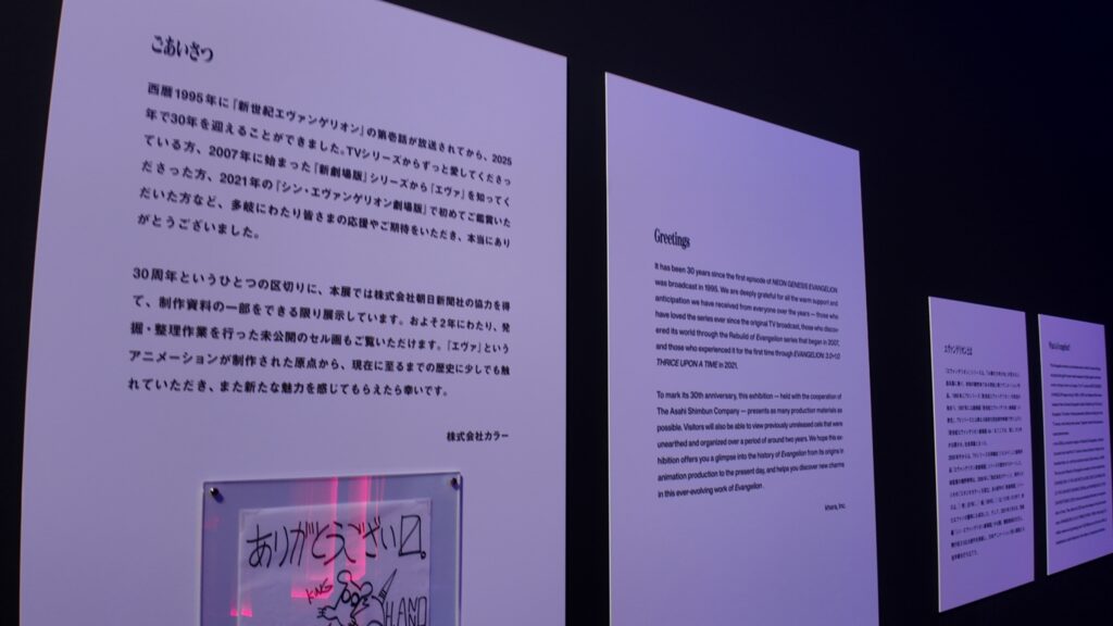 そしてエヴァの産みの親である庵野監督のごあいさつとサインもしっかりと展示されていた。