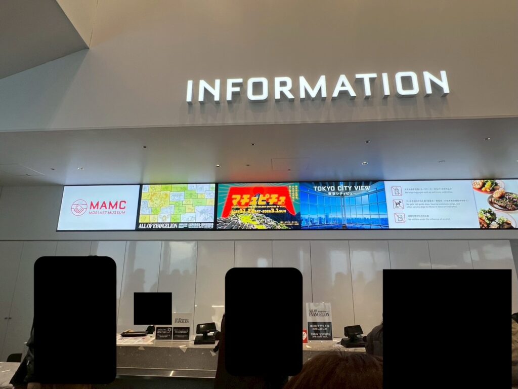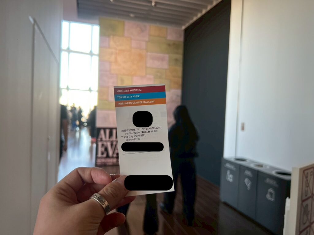 ALL OF EVANGELIONは六本木ヒルズタワー52階で開催されていて、会場に行くためにチケットが必要なので発券して向かう。