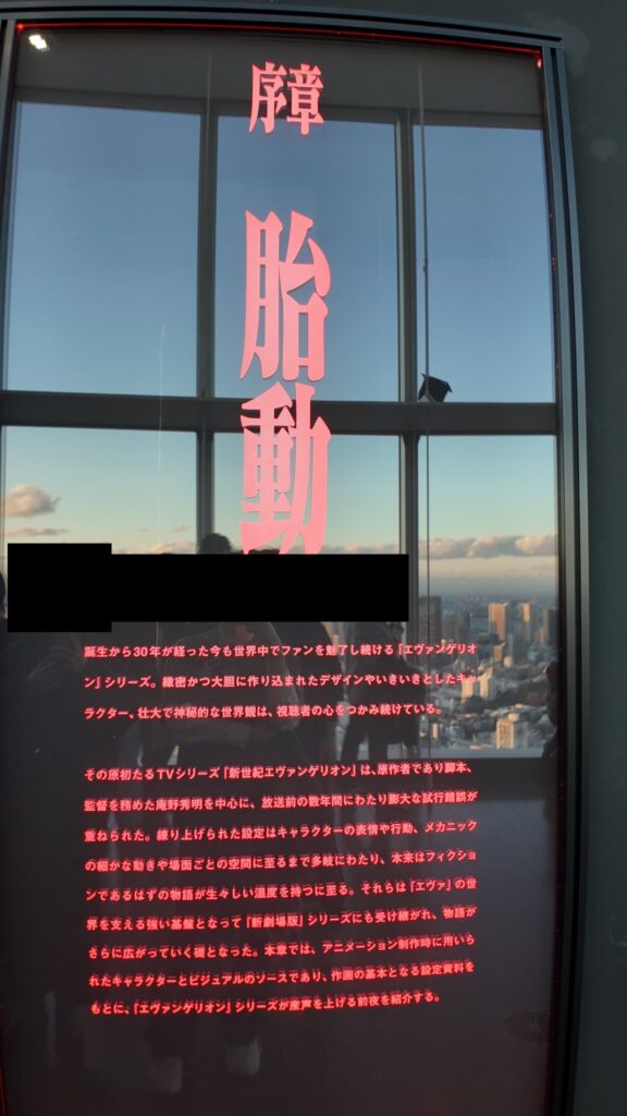 六本木のタワーの52階までエレベーターで登って入り口には ALL OF EVANGELIONのメインビジュアルが出迎えてくれて、すぐに初号機が姿を現してくれる。